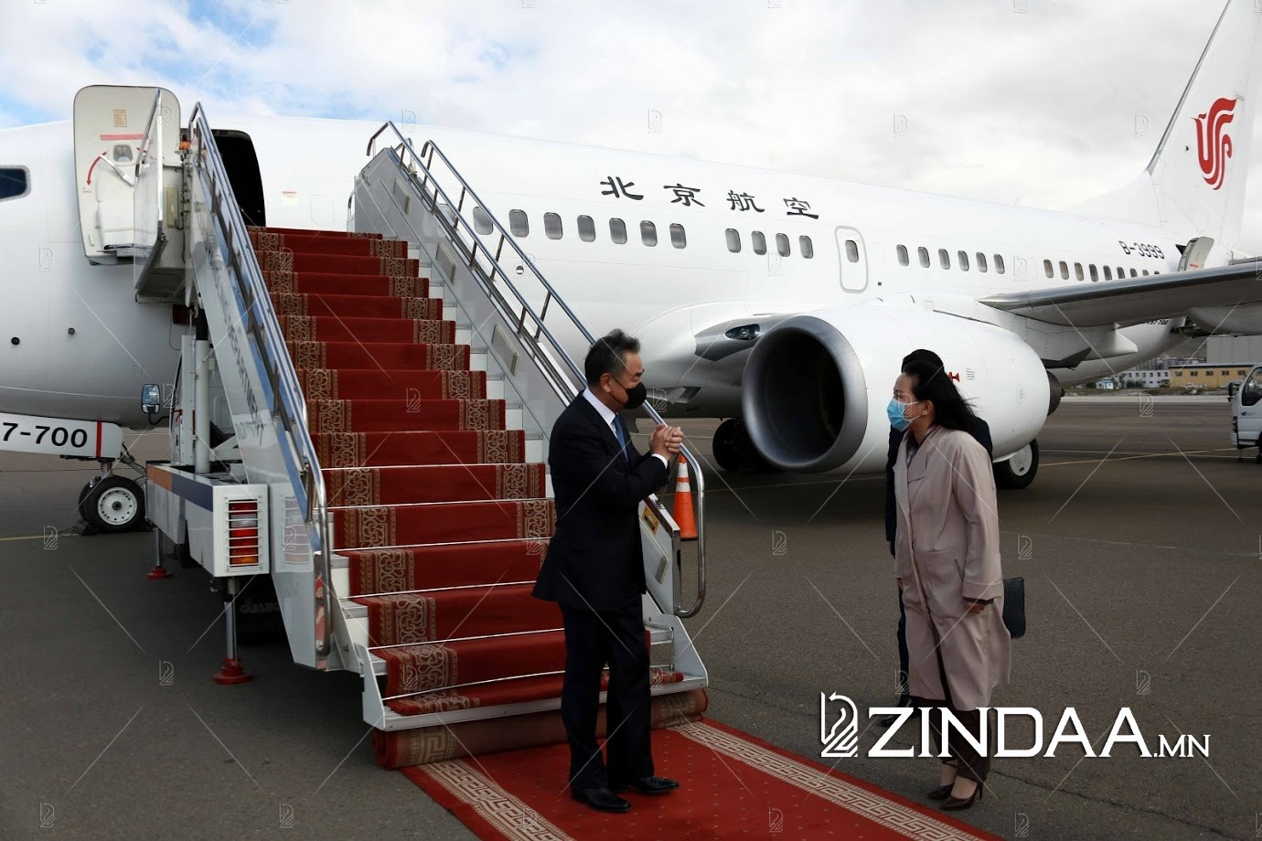 Хоёр талын албаны хүмүүс БНХАУ-ын Төрийн зөвлөлийн гишүүн бөгөөд Гадаад хэргийн сайд Ван И-г “Чингис Хаан” олон улсын нисэх онгоцны буудалд угтав.