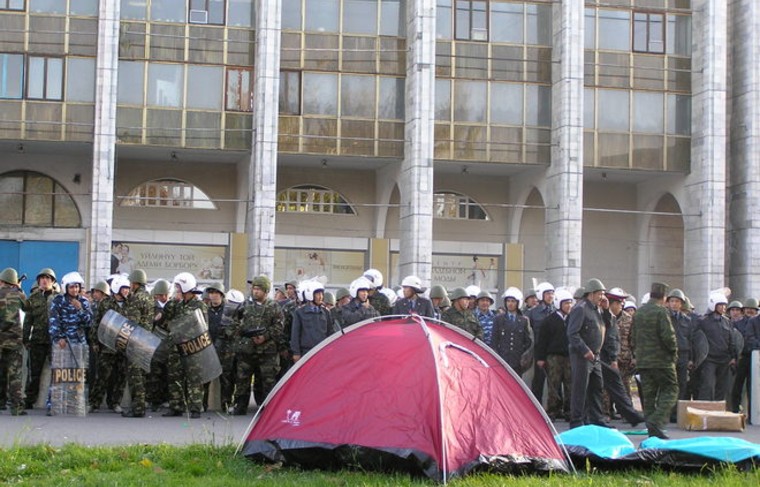 -Хэсэг сайн дурынхан Киргизийн Ерөнхийлөгч Сооронбай Жээнбековын өргөөг хамгаалахаар тус өргөөний дэргэд цуглараад байна. Орон нутгийн хэвлэлүүд Ерөнхийлөгчийн өргөөний зүг жагсагчид хөдөлсөн тухай мэдээлсэн бол сайн дурынхан ард иргэдэд хандан, аюулгүй байдлыг хангах үүднээс хамтарч ажиллахыг уриалжээ.