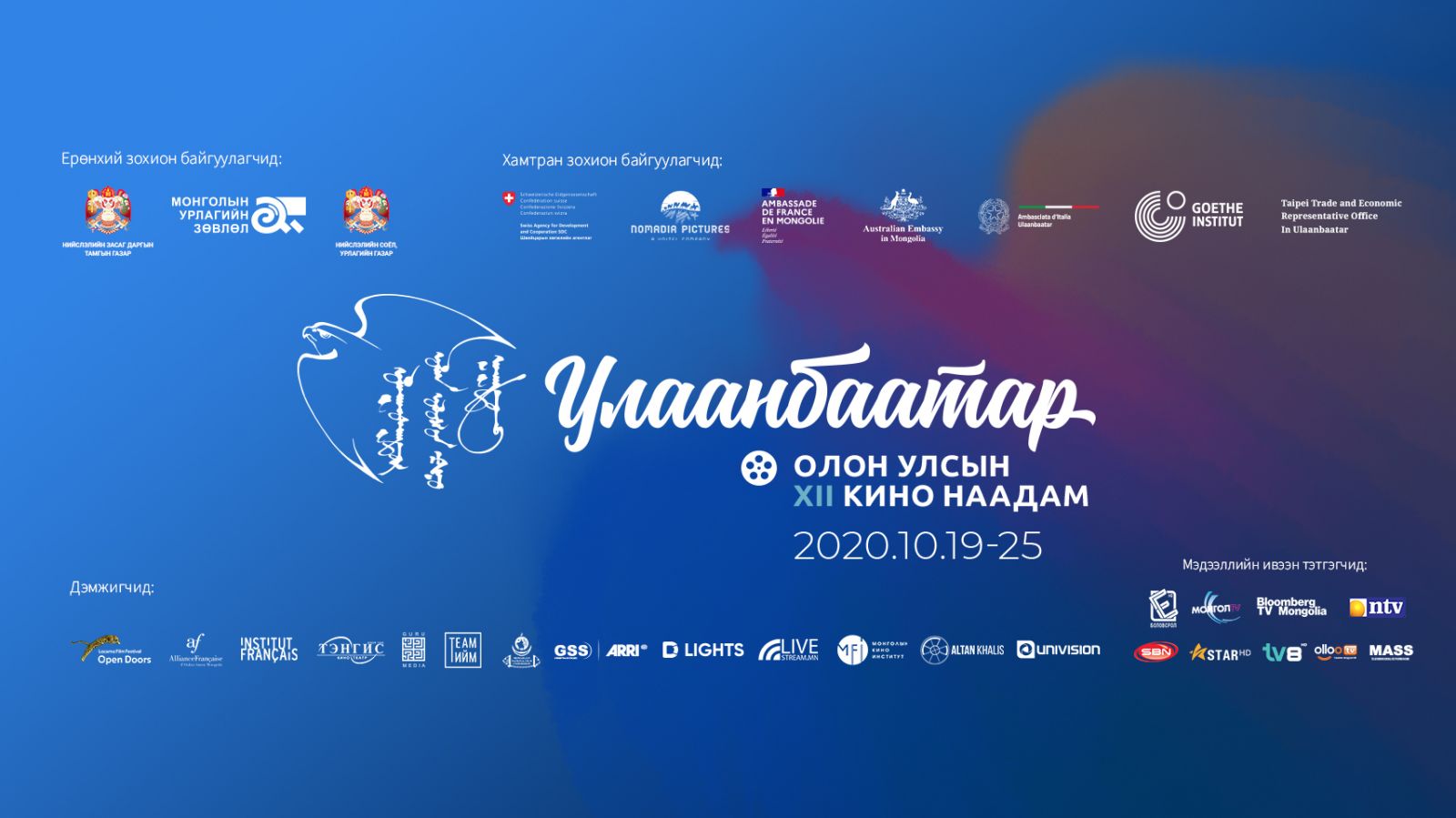 Нийслэлийн Засаг Даргын Тамгын Газар, Нийслэлийн Соёл Урлагийн Газар, Монголын Урлагийн Зөвлөл (МУЗ) нь Швейцарын Хөгжлийн Агентлаг, Номадиа Пикчерс ХХК-тай хамтран Бүгд Найрамдах Франц Улсын Элчин Сайдын Яам, Австралийн Элчин Сайдын Яам, Итали Улсын Элчин Сайдын Яам, Монгол дахь Гёте Институт, Тайпэйн Худалдаа, Эдийн Засгийн Улаанбаатар дахь Төлөөлөгчийн Газрын дэмжлэгтэйгээр Монголын кино урлагийн салбарыг хөгжүүлэх, кино уран бүтээлчдийн олон улсын хамтын ажиллагааг нэмэгдүүлэх, дэлхийн нэр хүндтэй наадмуудад шалгарсан кино бүтээлийг Монголын үзэгчдэд хүргэх зорилготой 12 дахь удаагийн “Улаанбаатар” Олон Улсын Кино Наадам (УБОУКН)-ыг 2020 оны 10-р сарын 19-25-ны өдрүүдэд Улаанбаатар хотноо зохион байгуулах гэж байна.