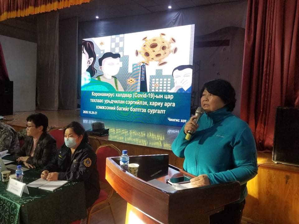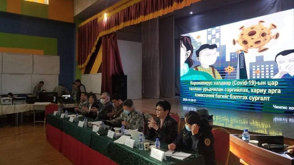 Монгол Улсын Шадар сайд, Улсын Онцгой комиссын даргын 89 дүгээр тушаалаар коронавируст халдварын цар тахлаас урьдчилан сэргийлэх, хариу арга хэмжээний бэлтгэл, бэлэн байдлыг хангуулах зорилготой “Ковид-19”-ын цар тахлын үеийн орон нутгийн шуурхай штаб, шуурхай хариу арга хэмжээний багийг бэлтгэх сургалт”-ыг улсын хэмжээнд зохион байгуулж байна.