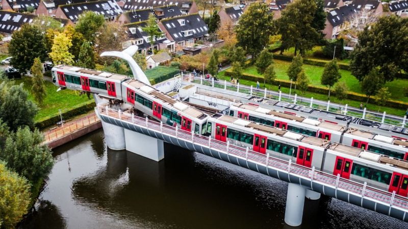 Осол тус улсын Роттердам хотын зэргэлдээх Спейкенисс хотын “Де Аккерс” метроны буудал орчим гарсан байна. Нидерландын архитектор, уран барималч Маартен Струйсын энэ инстолляц байгаагүй бол галт тэрэг 10 метрийн өндрөөс ус руу унах байв.