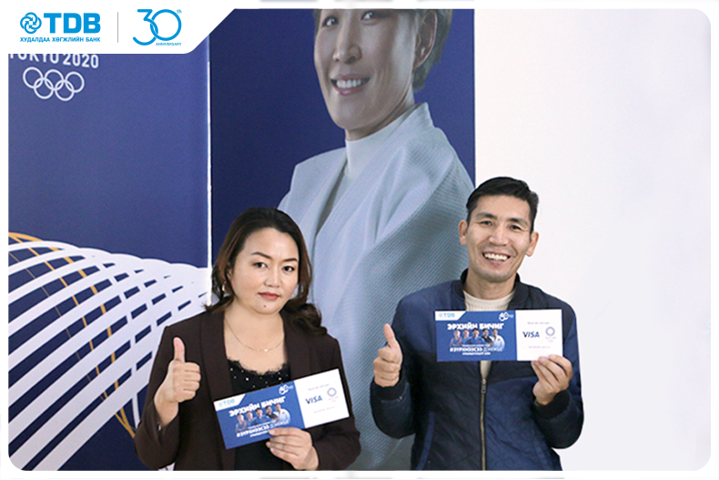 Та бүхэнд эргэн сануулахад Худалдаа, хөгжлийн банк нь 30 жилийн ойгоо тохиолдуулан 30 харилцагчаа “ТОКИО-2020” олимпын наадам үзүүлэх "ЗҮРХНЭЭСЭЭ ДЭМЖЬЕ" урамшуулалт аянаа эхлүүлсэн билээ. Энэхүү урамшууллын анхны эздээр тодорсон Б.Мөнхтогтох, Ж.Цэрэндулам, Ш.Зоригоо нар нь тус бүр хосоороо олимп үзэх эрхтэй болсон юм.