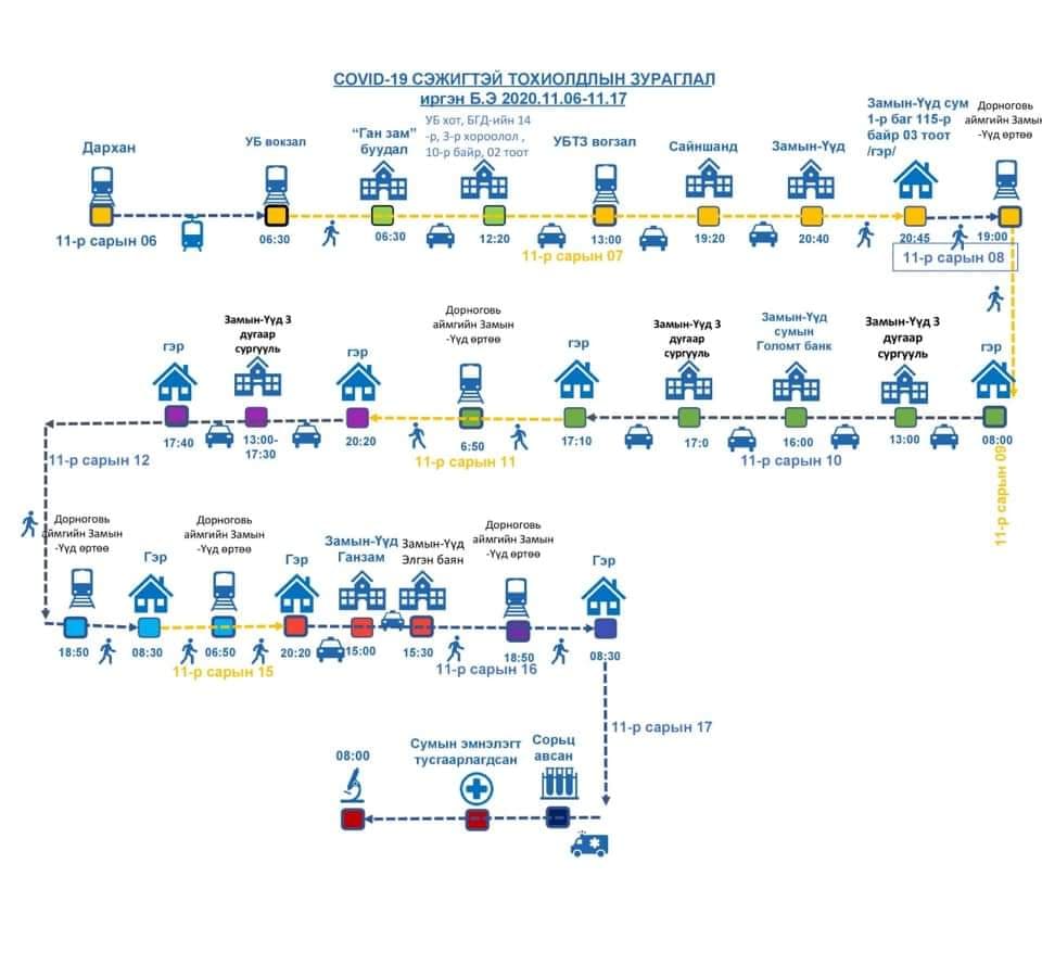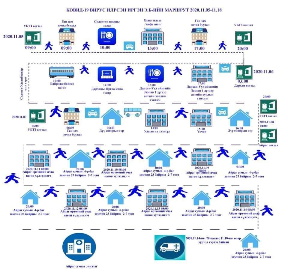 Халдварын тархалт тэлж байгаа тул Дорноговь аймагт бүртгэгдсэн халдвар авсан иргэдийн маршрут, зураглалыг олон нийтэд мэдээлж байгаа ба дараах газраар явсан бол өөрийгөө ажиглан тусгаарлаж, шаардлагатай бол шинжилгээ өгөхийг сануулж байна.