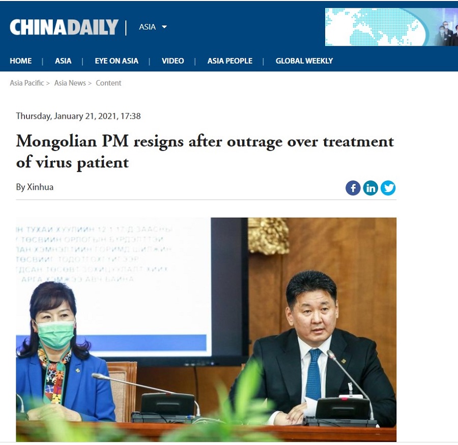 Синьхуа агентлагийн дээрх мэдээллийг China Daily цахим хуудас онцлон мэдээлжээ.