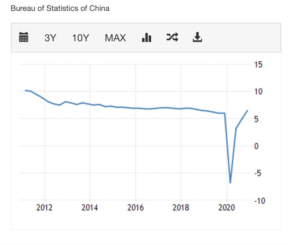 Ковид-19 цар тахлын нөлөөгөөр Хятадын ДНБ 2020 оны эхний улиралд -6.8% болж унасан бол түүнээс хойш (өмнөх оны мөн үеэс) 2-р улиралд 3.2%, 3-р улиралд 4.9% болж сэргэсээр 4-р улиралд цар тахлын өмнөх өсөлтийн түвшинд хүрсэн буюу 6.5%-иар өсчээ.