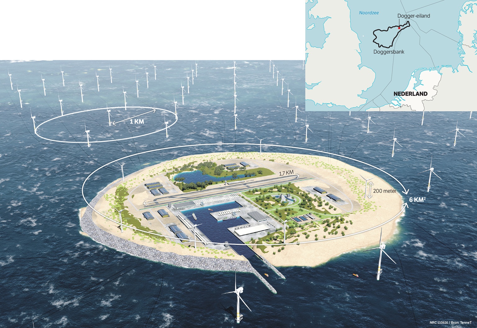 Энэ нь оффшор цахилгаан станц байх бөгөөд хиймэл арал дээр 120 мянган кв.м талбайд байрлуулах олон зуун салхин сэнснээс экологийн цэвэр эрчим хүчийг хуримтлуулан, түгээх юм.