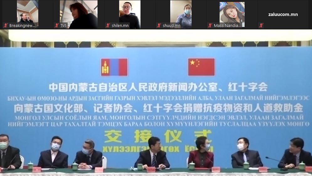 БНХАУ-ын ӨМӨЗО-ны Ардын Засгийн газрын Хэвлэл мэдээллийн алба, Улаан загалмай нийгэмлэг коронавирусний халдвартай тэмцэхэд Монгол Улсад 60 мянган амны хаалт, 20 мянган бээлий, 210 мянган юаниар дэмжлэг үзүүллээ.