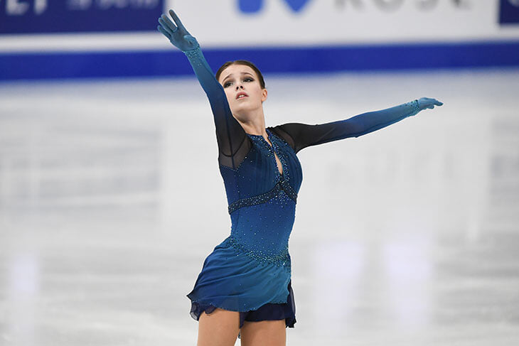 Сүүлийн хэсэгт хоёр орос охин дараалан гарч, хамгийн сүүлд Японы Рика Кихира гарах байлаа. Эхлээд мөсөн дээр гарсан Александра Трусова харамсалтай нь сэтгэлийн хөдөлгөөнөө барьж чадсангүй. Евгений Плющенкогийн шавь гурвалсан акселиас татгалзсан ч гурвалсан лутц дээр маш бүдүүлэг алдаа гаргаж унан, каскадгүй хоцорлоо. Орос пуужин Трусова 64,82-хөн оноо авснаар дэлхийн аварга болох мөрөөдөл нь энэ удаад бүтэхгүй болсныг харуулах шиг боллоо. Магадгүй Евгений Плющенкогийн буруу ч байж мэдэх юм.
