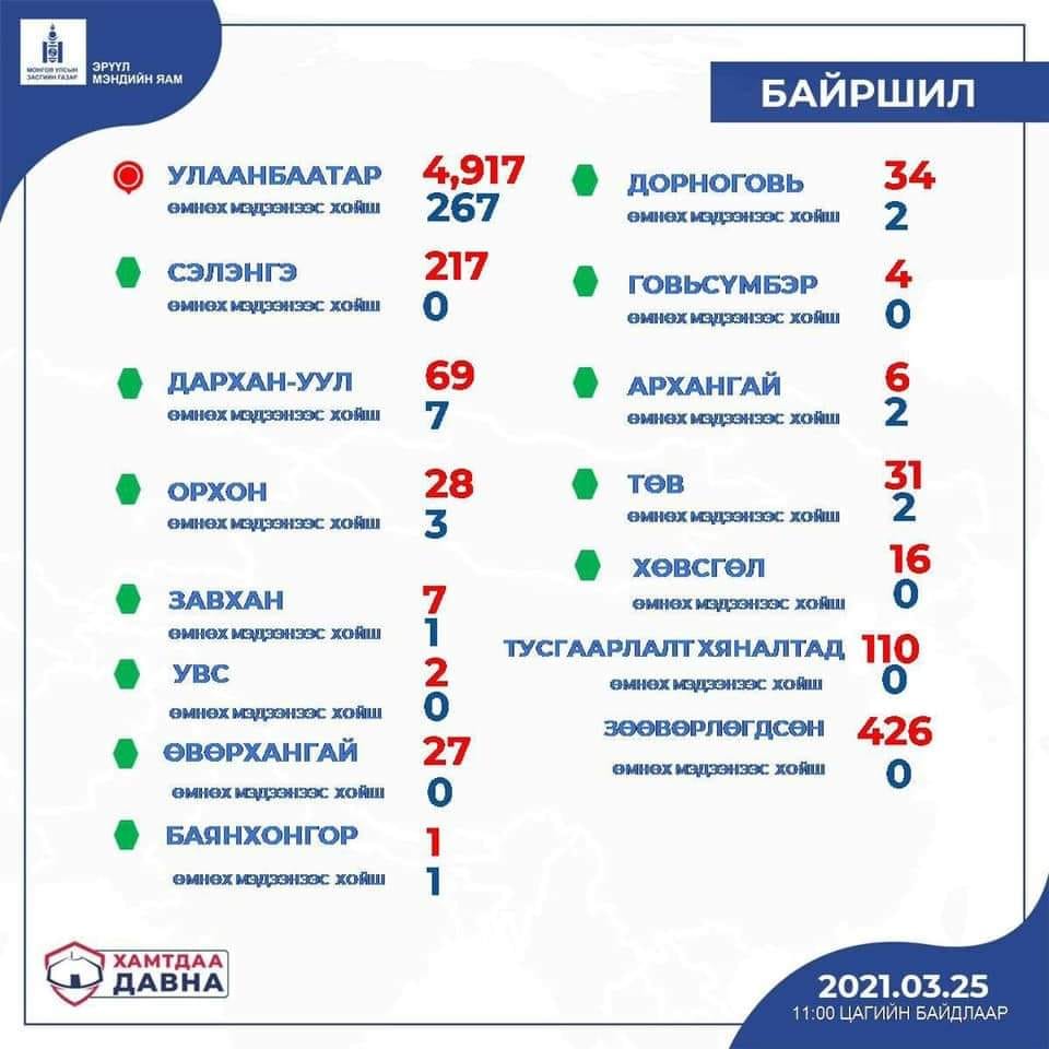 Ийнхүү Хайрхан сумын 1, Эрдэнбулган сумын 5 иргэнээс халдвар батлагдаж, тандалт судалгааны ажил үргэлжилсээр байна.