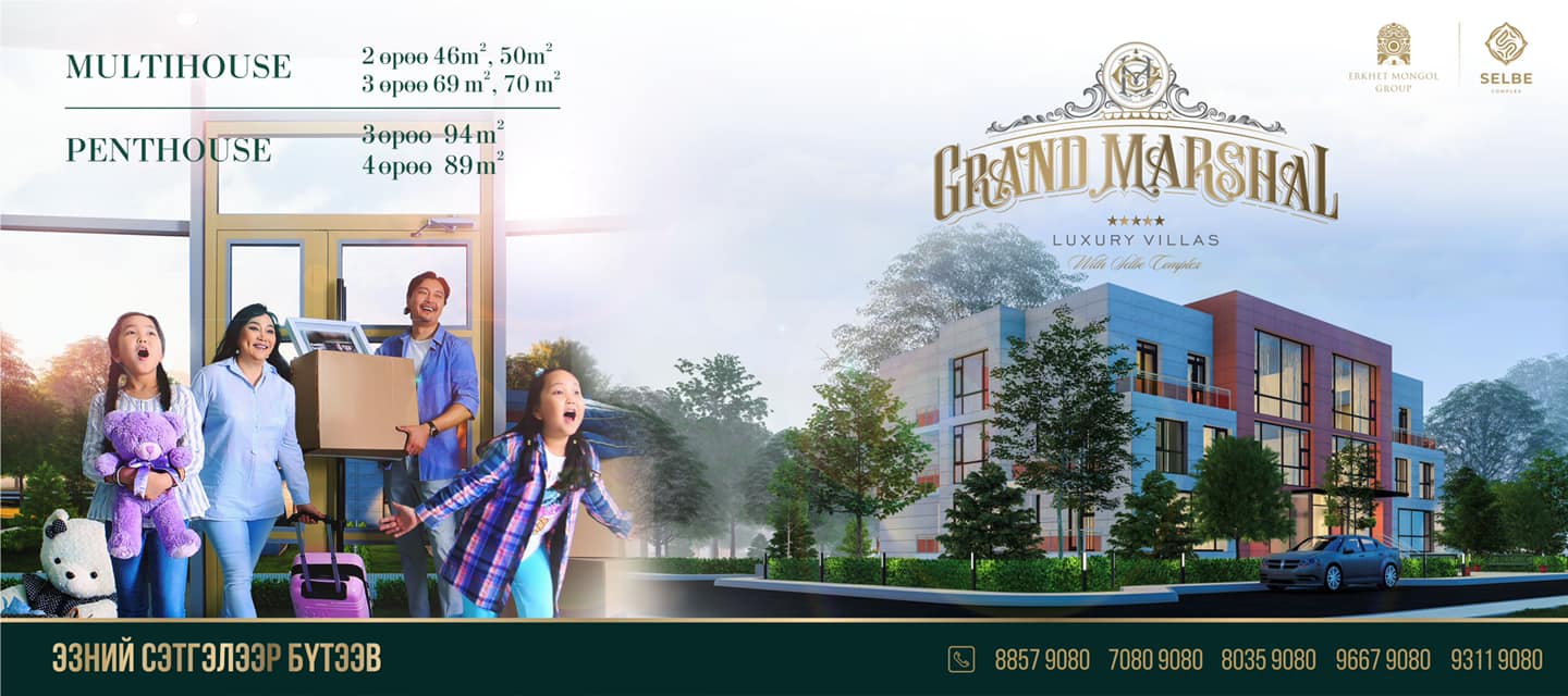 Дэлгэрэнгүй мэдээллийг фэйсбүүкийн “Grand marshal luxury villas” хуудаснаас болон 88579080, 9810-9080, 99199080, 9005-9080 9667-9080, 8035-9080, 8070-9080, 8084-9080, 9088-9999, 8033-9080, 9311-9080 утсаар авна уу.