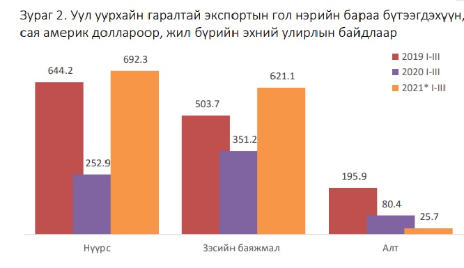Монголын уур уурхайн түүхий эдийн гол худалдан авагч Хятадын эдийн засаг хурдтай сэргэж эхэллээ. Харин түүхий эдээ нийлүүлэгч Монгол Улсын хувьд байдал тэс өөрөөр эргээд байгаа. Цар тахлын хамрах хүрээ тэлж, 100 мянган хүнд ногдох өвчлөлөөрөө дэлхийд тэргүүлэх болсон нь эдийн засгийн үзүүлэлтүүдээ бүхэлд нь хойш татаж эхэлсэн. Тэдгээрээс хамгийн том алдагдлаа экспортын орлогын 90 гаруй хувийг бүрдүүлдэг уул уурхайн салбараас хүлээж мэдэхээр байна. Гуравдугаар сарын гадаад худалдааны дүнгээс харахад, экспорт 665.8 сая ам.доллар болж, өмнөх сараас 4.1 хувь буюу 28.8 сая ам.доллароор буурчээ. Энэ нь Монгол дахь цар тахалтай нөхцөл байдалтай холбоотойгоор Хятадын зүгээс Оюутолгойгоос зэс худалдаж авахаа түр хугацаанд зогсоосноос шалтгаалсан. Гэхдээ Гашуунсухайт боомтын зэсийн экспорт гацаанаас сэргэж эхэлсэн гэдэг мэдээлэл байна.