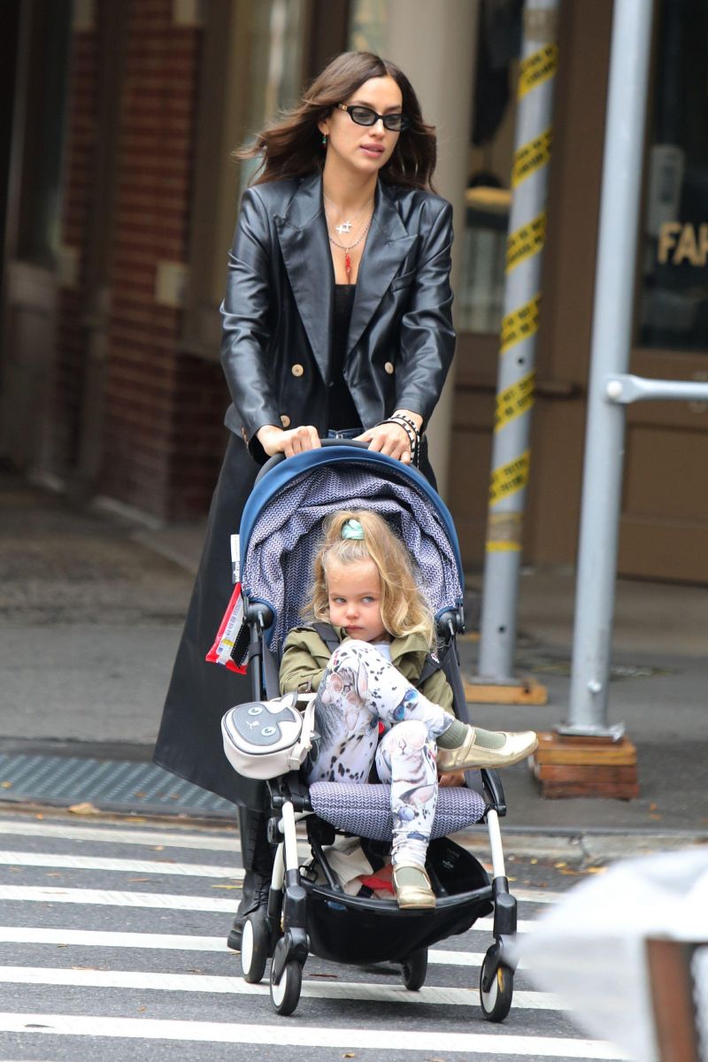 Өсөж том болж буй охиноо Ирина Шейк тэвэрч явахад хүнд болсон тул тэргэн дээр нь түрж явдаг. Лея гэрэл зурагчдыг хараад заримдаа зураг авахуулахад тохиромжтой үе биш гэдгээ энэхүү царайгаараа илэрхийлдэг.
