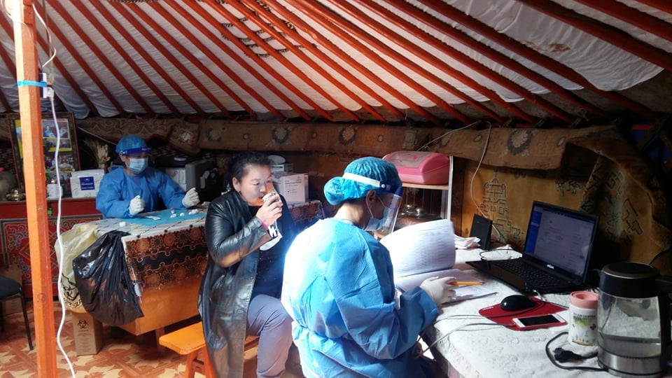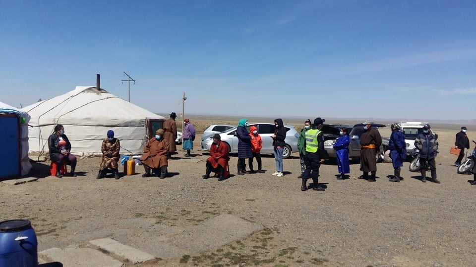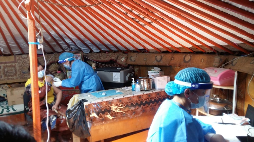 Шанх, Нарийн хүр, Онгоцон Ухаа багийн төвийн байранд Нэгдсэн эмнэлгийн эмч, сувилагч, цагдаагийн албан хаагч, багийн Засаг дарга нараас бүрдсэн дархлаажуулалтын баг ажиллаж, 300 гаруй малчныг вакцинд хамруулаад байна.