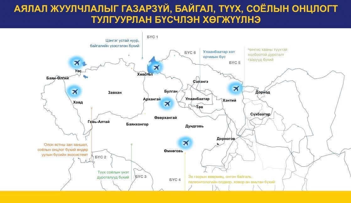 Засгийн газар аялал жуулчлалыг бүсчилэн хөгжүүлэх бодлогын хүрээнд зүүн гурван аймгийг түүхэн аялал жуулчлалын бүс болгохоор төлөвлөж, Хэнтий аймагт Их эзэн Чингис хааны дурсгалт газар бүхий цогцолбор байгуулж байна. Нэн тэргүүнд хилийн боомтуудаа хатуу хучилттай замаар холбож, үүний дараа аялал жуулчлалыг хөгжүүлэх бодлого дагасан автозамтай болох зорилт тавьж байгааг Ерөнхий сайд хэлэв.