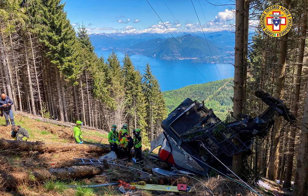 Италийн хойд Пемонт мужид дүүжин тээврийн кабин 20 метрийн өндрөөс унасны улмаас 14 хүн амиа алджээ. Дүүжин тээврийн олс зогсоолд очихын өмнөхөн тасарч, дор хаяж 15 хүн тээвэрлэж явсан нэг кабин нь доош унажээ. Тэдний дунд явсан ес болон таван настай хоёр хүүхэд хүнд гэмтэж, эмнэлэгт хүргэгдсэн ч нэг нь шархаа даалгүй өөд болсон байна. Зорчигчдын талаас илүү хувь нь гаднын жуулчид байсан гэнэ.