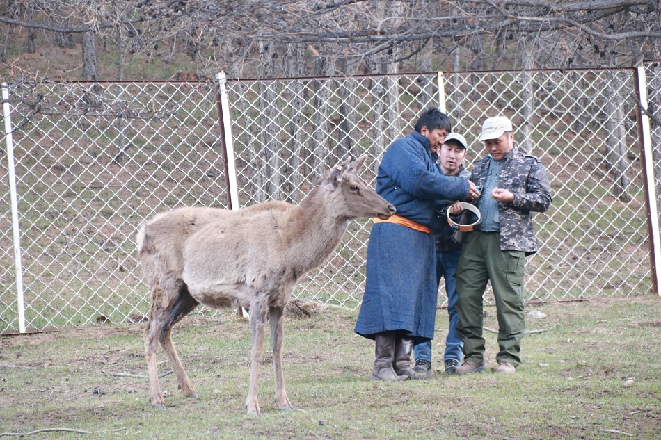 Говь-Алтай аймгийн Байгаль орчин, аялал жуулчлалын газрын дэргэдэх Хантайширын нурууны "Буга нутагшуулах төв"-д нутагшуулж буй 3 настай Шарга /эр/ 4 настай Коко /эм/ нарт Шинжлэх ухааны академийн биологийн хүрээлэнгээс сансрын дохиололт хүзүүвчийг зүүлээ.