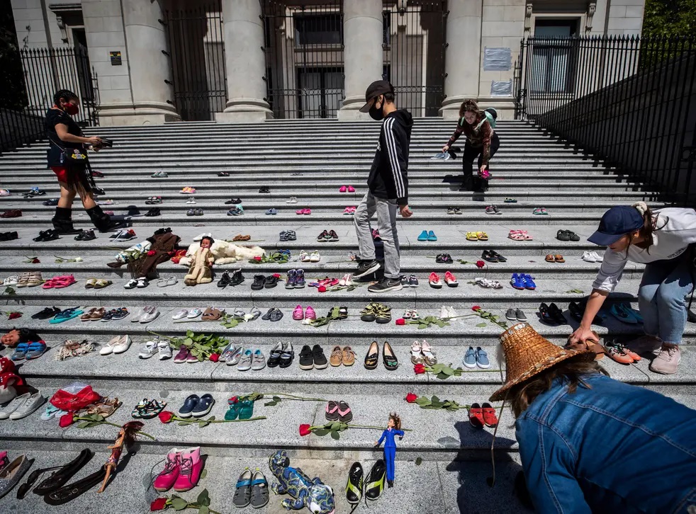 Ванкувер хотын оршин суугчид эдгээр хүүхдийн дурсгалыг хүндэтгэн хотын урлагийн галерейн шатан дээр хос гутал, цэцэг өргөжээ.