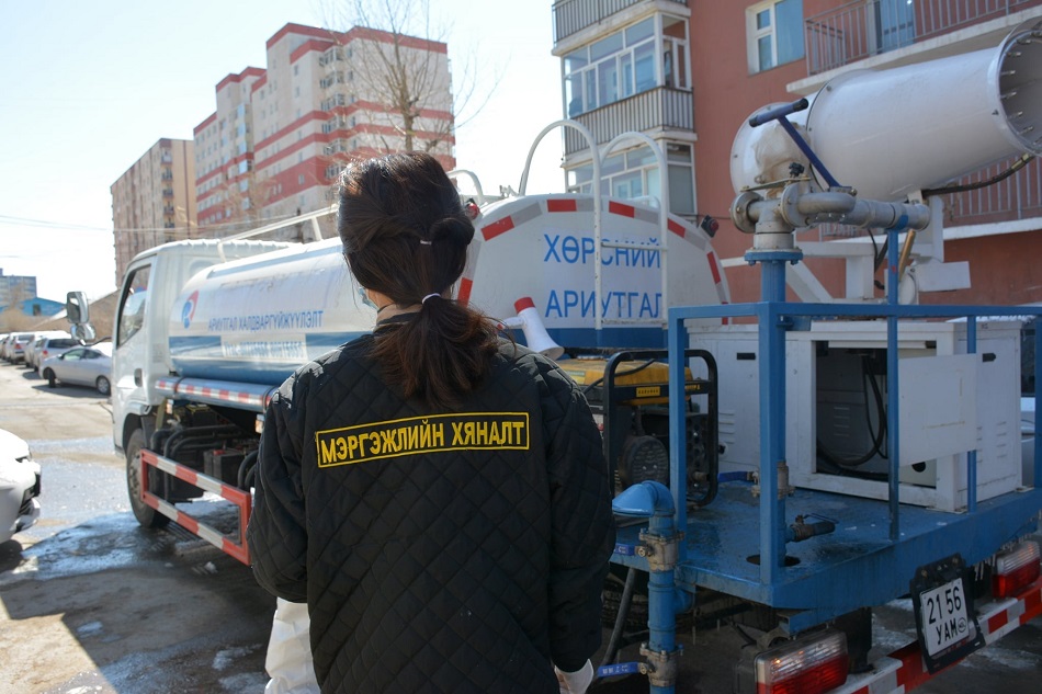 Урьдчилан сэргийлэх халдваргүйжүүлэлтийг хүнсний худалдаа, үйлдвэр, үйлчилгээний 48 (23,481), эрүүл мэндийн 20 (5362), сургалт, боловсролын 5 (1557), бусад 194 (35,535), нийт 267 (65,935) аж ахуйн нэгж, байгууллага, нийтийн эзэмшлийн гудамж, талбайн нийт 61,704 (44,092,338.3) м2 талбайд хийхэд хяналт тавин ажиллалаа. Хяналт шалгалтаар ариутгагч нь мэргэжлийн бус, хувийн хамгаалах хэрэгсэл хувцсыг бүрэн өмсөөгүй, бодисын хангамж хүрэлцээгүй, бодисыг зааврын дагуу ашиглаагүй, бүртгэгдээгүй болон шинжилгээ баталгаажилтгүй бодис ашигласан зэрэг зөрчил илэрснийг газар дээр нь арилгуулах арга хэмжээ авсан байна.