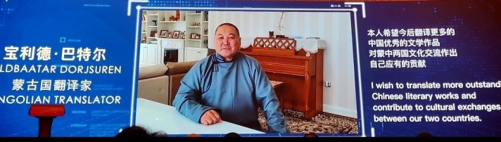 Хятад судлаач, орчуулагч доктор Д.Болдбаатарт “Хятадын утга зохиолын салбарт онцгой хувь нэмэр оруулсны төлөө шагнал” олгосныг Монгол Улсаас БНХАУ-д суугаа ЭСЯ-ны Элчин зөвлөх Л.Мөнхтүшиг төлөөлөн 2021 оны 9 дүгээр сарын 14-ний өдөр гардаж авав.