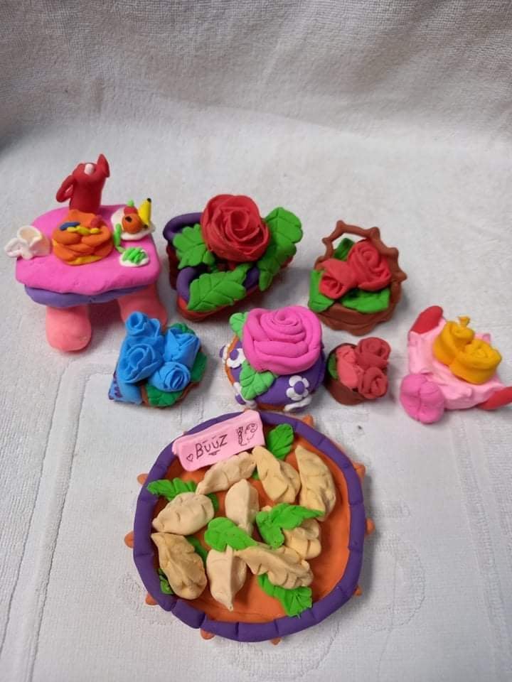 Бяцхан барималч охин жилийн өмнө “Сувдаагийн урлан” цахим сургалтад сууж, баримлын шавраар төрөл бүрийн бүтээл хийж сурчээ.
