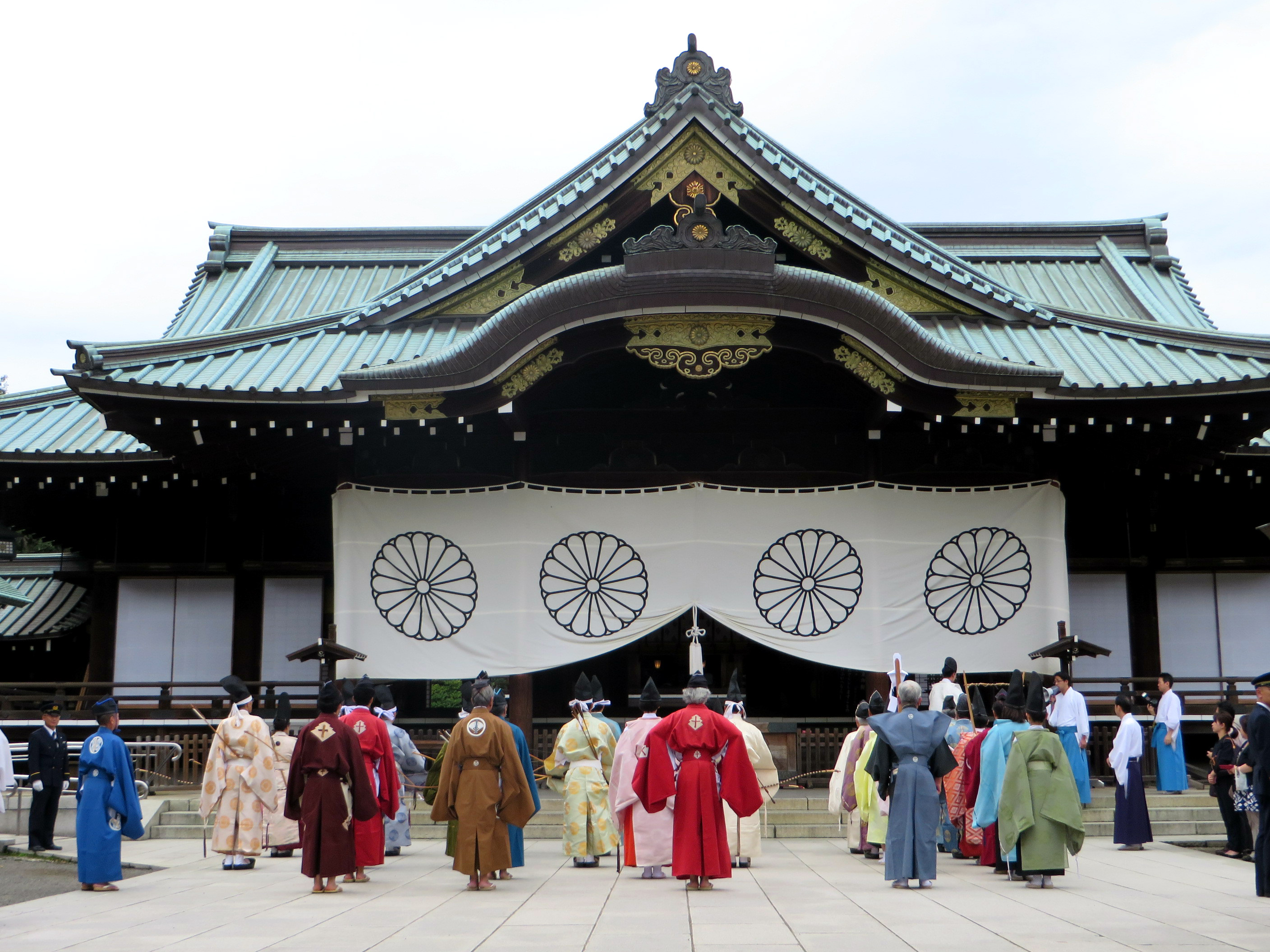 Шинто шашны Ясүкүни сүмд XIX зууны дунд үеэс хойш болсон бүхий л тулааны талбарт амиа алдсан япончуудын нэрсийн жагсаалт хадгалагддаг байна. Эл жагсаалтад Дэлхийн хоёрдугаар дайны үеэр Токио бууж өгсний дараа цаазаар авахуулсан цэргийн гэмт хэрэгтнүүдийн нэрс орсон байдаг тул Японы албан тушаалтнууд Ясүкүни сүмд очихыг БНХАУ, БНСУ болон Азийн бусад орнууд Японы түрэмгийллийг зөвтгөсөн явдал гэж үздэг.