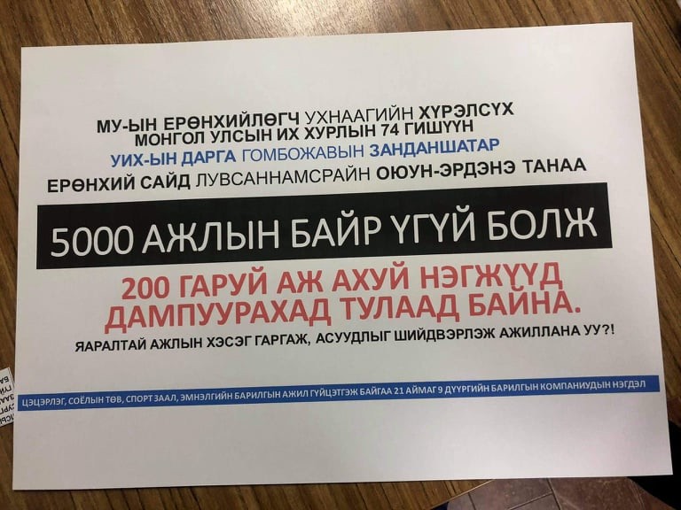 -Бидний зүгээс энэ сарын 11-нд эрх баригчдад хугацаатай шаардлага хүргүүлсэн. Ерөнхий сайд Л.Оюун-Эрдэнэ, УИХ-ын дарга Г.Занданшатар, Сангийн сайд Б.Жавхлан, Барилга, хот байгуулалтын сайд Б.Мөнхбаатар болон УИХ-ын 76 гишүүнд шаардлага хүргүүллээ. Өнөөдрийг хүртэл шаардлагын хариу ирээгүй. Тиймээс шаардлагын хариуг өгч, бидэнтэй уулзаасай хэмээн Сангийн яамны гадаа жагсаж байна.