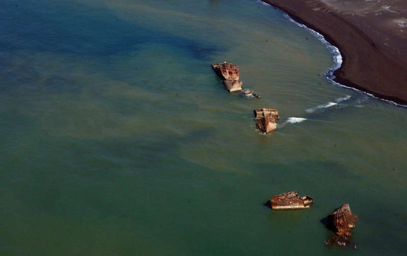 “Асахи” сувгийн мэдээлснээр, нисдэг тэрэгнээс авсан гэрэл зураг дээр Ивожима арлын төлөөх тулааны үеэр АНУ-ын цэргүүдийн булаан авсан Японы усан онгоцнуудын 20 гаруй сэг гарчээ. Эдгээр усан онгоцыг давлагаа зүсэхэд ашиглах зорилгоор живүүлсэн байна. АНУ тус арал дээр боомт байгуулахыг төлөвлөж байсан ч арлын газар зүйн онцлогоос шалтгаалан энэ төлөвлөгөө хэрэгжээгүй аж.