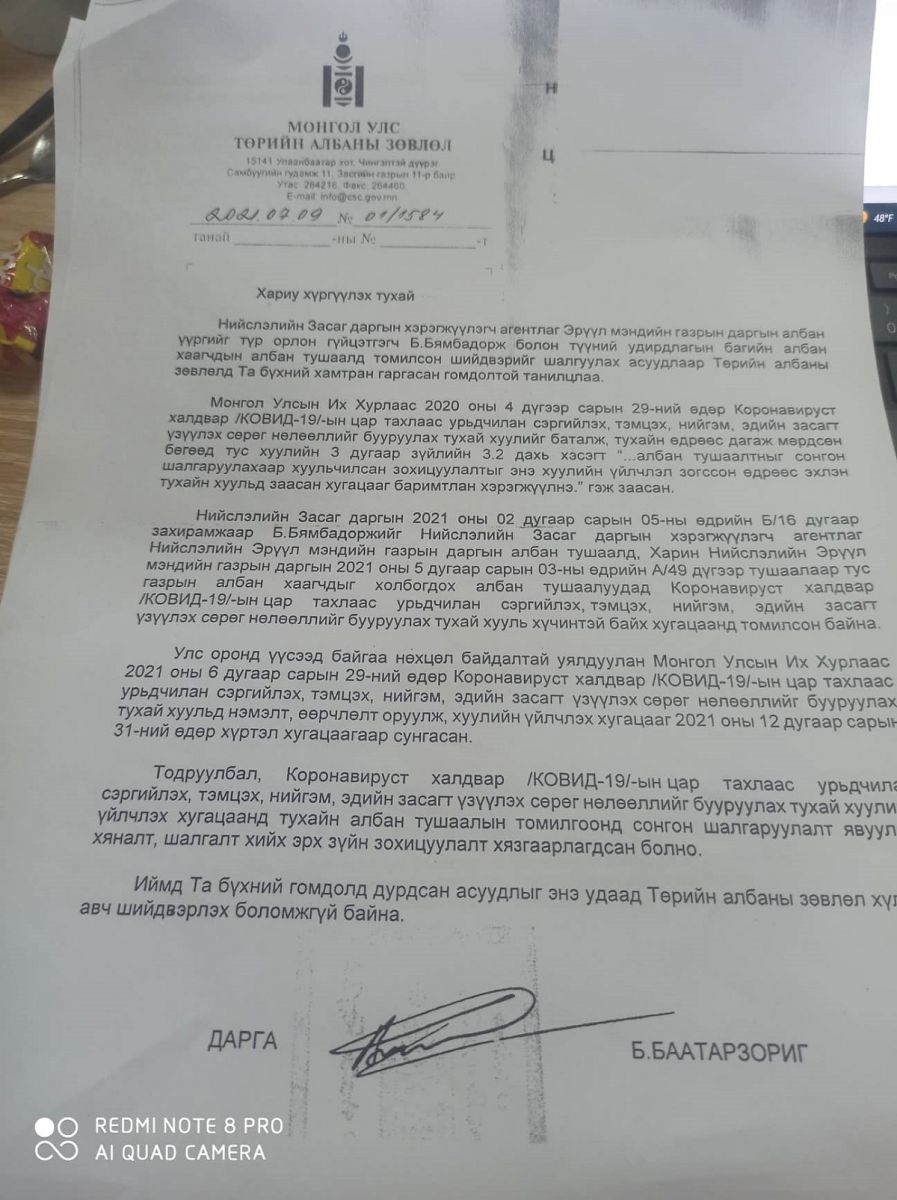 Бямбадорж ирээд Эрүүл мэндийн газар үндсэндээ уналтын байдалд орлоо ш дээ,,, Харьяа байгууллагуудад өгч байгаа чиглэл гэж алга,, явж байгаа бичиг цаас нь галүуу хүний өдрийн тэмдэглэл,,,ёстой л халаа сэлгээнээс өөр хийж байгаа юм алга,,, Одоо газрын ажилчдаа хийж чадахгүй бол зайлаарай, гээд л дарамтлаастай,,,ийм байхад Ковид буурахгүй,,,