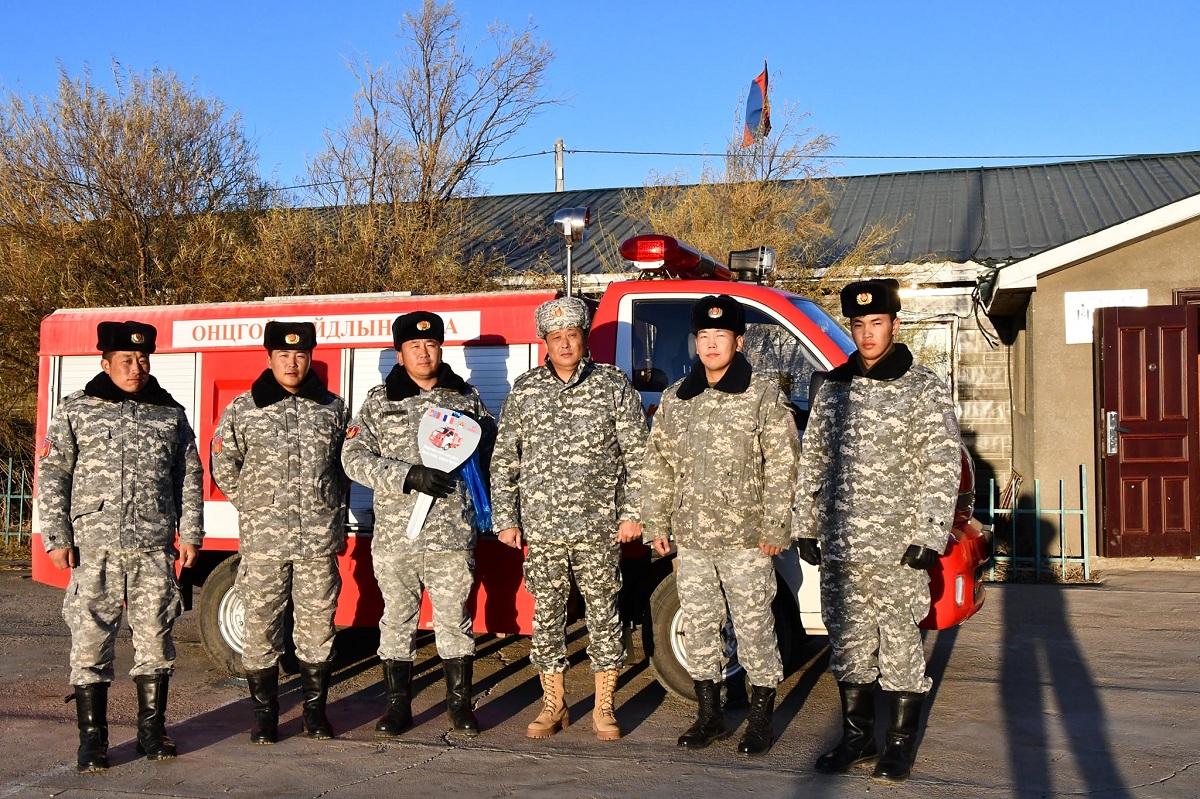 Тэгвэл УИХ-ын гишүүн, УИХ-ын Ёс зүй, сахилга хариуцлагын байнгын хорооны дарга Б.Бат-Эрдэнэ, УИХ-ын гишүүн Ц.Идэрбат нар Хэнтий аймагт ажиллах үеэрээ тус аймгийн Онцгой байдлын газарт дээрх төслийн хүрээнд орж ирсэн гал түймэр унтраах тусгай зориулалтын автомашиныг хүлээлгэн өглөө.