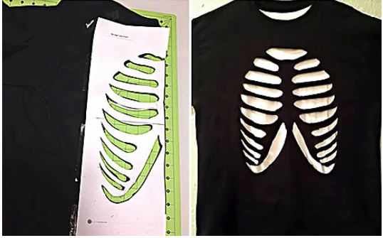 Зураггүй хар футболкоо гаргаж ирээд шохой эсвэл өөр цагаан зүйлээр хавирга зураарай. Футболкоо зурагт үзүүлсний дагуу нугалаад болгоомжтойгоор хайчил. Футболкон дотроо цагаан майк өмсөөд л болоо.