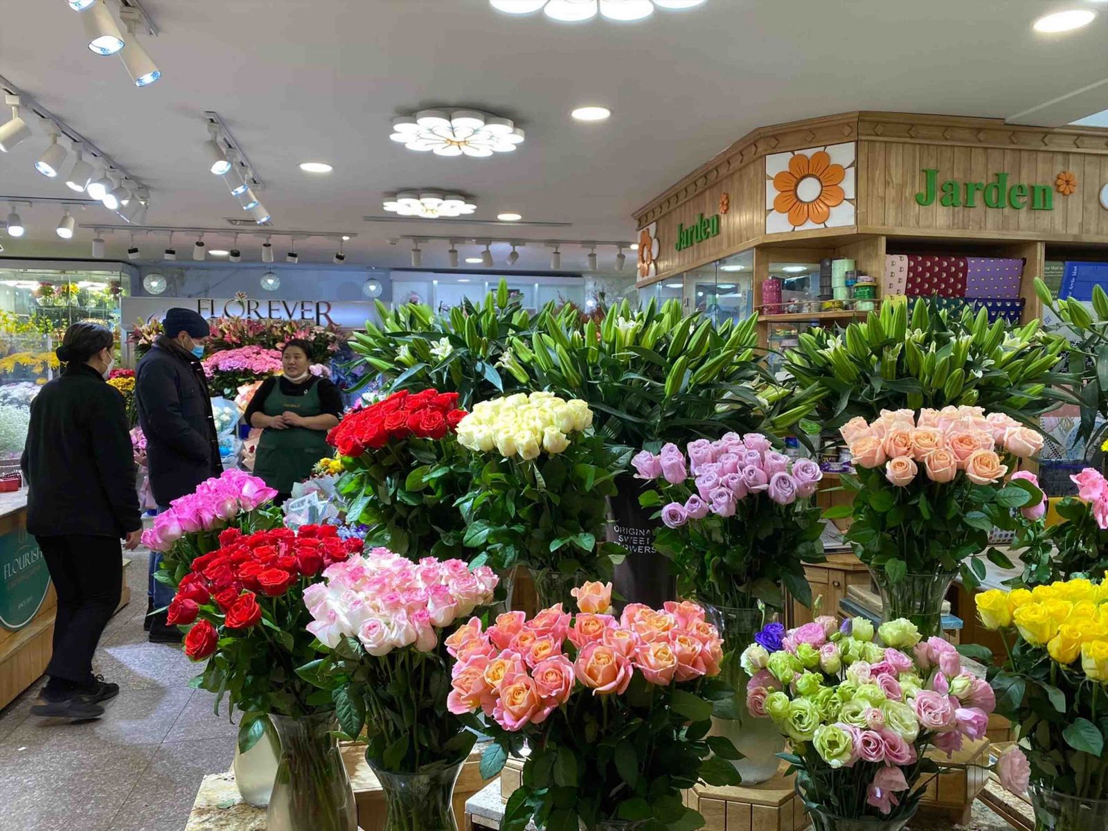Энэ нь тэр бүр цэцгийн утга учир, бэлгэдлийг мэддэггүй хүмүүсийн сонголтод нэмэр болж байгаа нь харагдана. Энд тусдаа нэр хаягтай найман лангуу байна. Үнийн хувьд ч хоорондоо ялгаатай юм. Цэцгийн тасгийн голд байрлах “Jarden” хэмээх лангуунд нэг ширхэг богино сарнай 9000 төгрөг, урт сарнай нь 12 мянган төгрөгийн үнэтэй гэх. Харин баглаа цэцэг 50 мянган төгрөгөөс дээш үнээр зарагдаж байлаа.