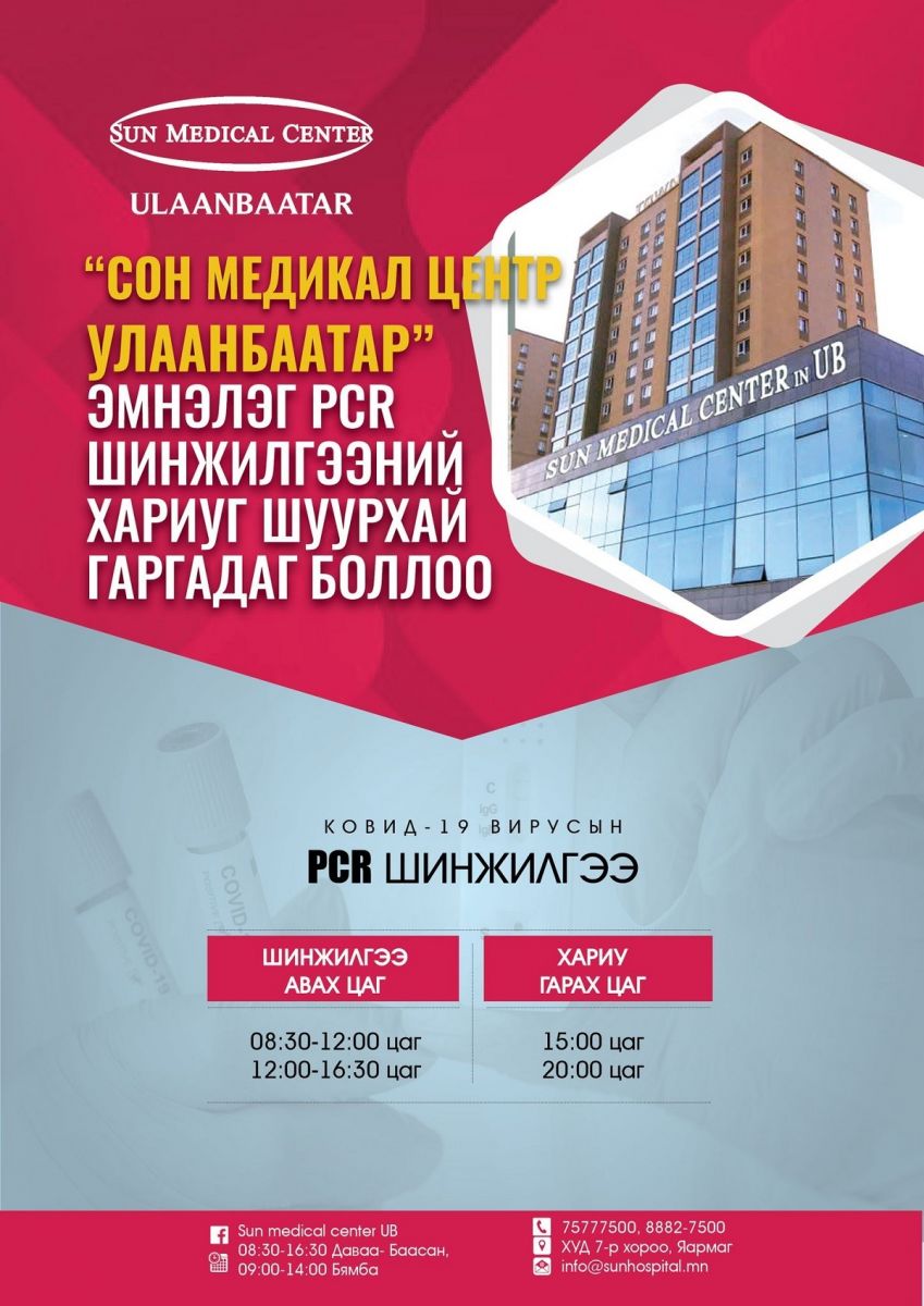 "Sun medicial center UB" эмнэлэг нь "Ковид-19" халдвар илрүүлэх PCR шинжилгээний хариуг шуурхай гаргадаг боллоо.