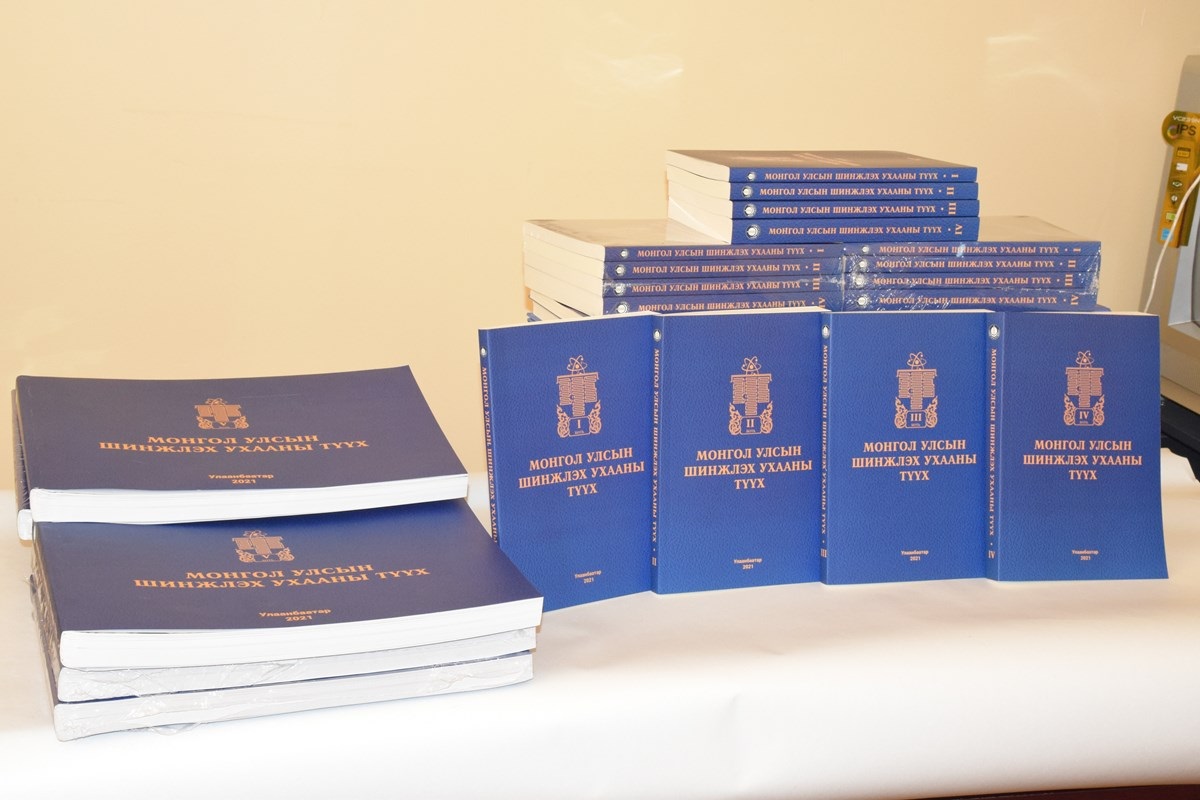 “МОНГОЛ УЛСЫН ШИНЖЛЭХ УХААНЫ ТҮҮХ” таван боть бүтээлийг зохиогчдын баг. 2021.11.24