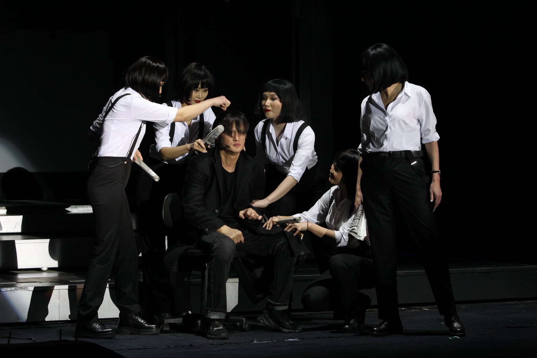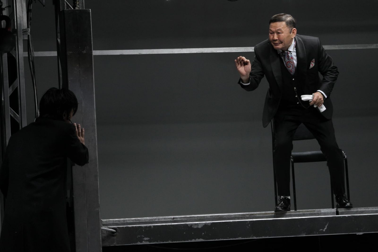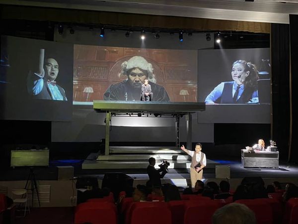 Улсын яллагчийн дүрийг МУГЖ Д.Ганцэцэг авьяас, туршлагаараа “зодож” тултал нь бүтээжээ. Ерөнхий найруулагч, дүрсний найруулагч нарын өвөрмөц шийдэл болох тайзан дээрх гурван дэлгэцээр жүжгийн явцыг өөрөөр хэлвэл шүүх хурлын үйл явцыг шууд дамжуулан үзүүлсэн нь Монголын театрын урлагт цоо шинэ зүйл байлаа. Энэ нь Оросын төдийгүй Европын театрын орчин үеийн хэв маяг гэдгийг туслах найруулагч Никита Калмыков хэлж байлаа. Арын гурван дэлгэц дээр Раскольниковын цөхөрсөн харц, улсын яллагчийн шийдэмгий бөгөөд ширүүн харц, Дуня, Соня хоёрын нулимсны дусал ч харагдана...