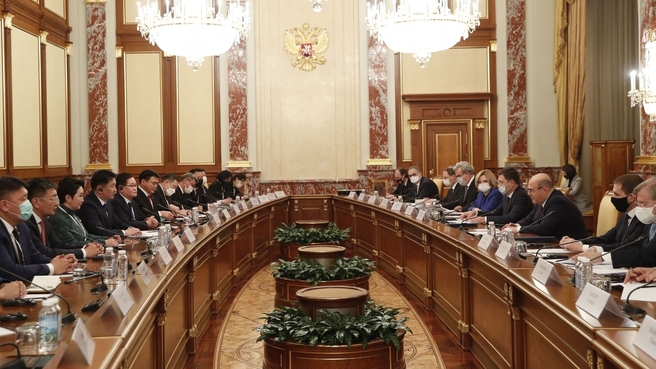 Манай хоёр улс өнгөрсөн онд коронавирусний цар тахлын улмаас буураад байсан хоёр талын бараа эргэлтийг сэргээж чадсан. Энэ оны аравдугаар сарын байдлаар хоёр улсын бараа эргэлт 2020 онтой харьцуулахад 22 хувиар нэмэгдэж, 1.4 тэрбум ам.долларт хүрээд байна" гэж Мишустин онцолжээ.