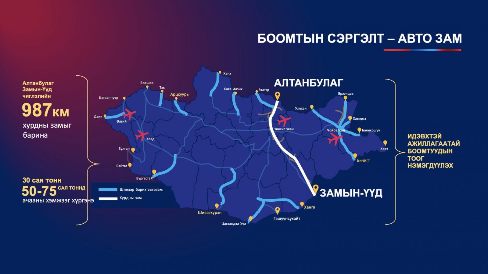 “Шинэ сэргэлтийн бодлого”-ын хүрээнд дараах боомтуудыг автозам, төмөр замаар холбоно.