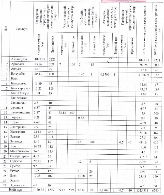 Хамгийн их газрыг Алтанбулаг суманд өмчлүүлэх бол Баян, Баянхангай, Эрдэнэ сумдад газар олгохгүй байхаар шийдвэрлэсэн байна.