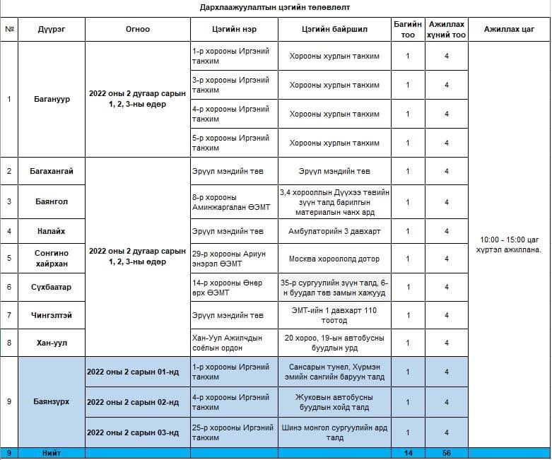 Энэ өдрүүдэд дархлаажуулалтын цэгүүд 10.00-15.00 цагийн хооронд ажиллана.