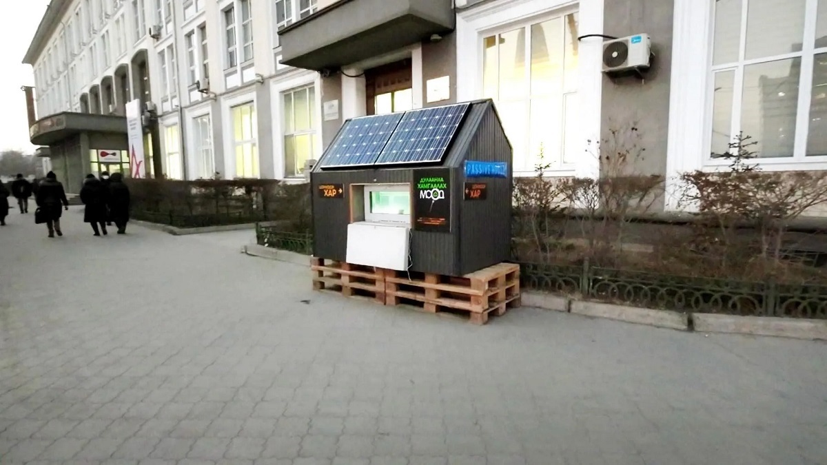 Нийслэлийн төв цэгт Төв шуудангийн гадаа муурын байшингаас томхон хэмжээтэй саарал өнгийн үзүүлэнгийн байшинг хэсэг хугацаанд байршуулан, хүмүүст сонирхуулж байсан. Цонхоор нь шагайвал шилэн хорготой алтан загаснууд гурван есийн хүйтэнд амьд байгаа харагдана. "Гадаа ийм хүйтэн байхад цахилгаанаар халаагаагүй, гал түлээгүй ийм жижиг байшинд загас амьд байна гэдэг мөн хачин аа’’ гэж гайхах хүмүүс хөлхөлдсөөр байсан юм. Уламжлалт аргаар буюу зууханд гал түлж хэчнээн сайн түлээгээ өрдсөн ч өвөлдөө даарч жиндэх байдлаас XXI зуунд ч салаагүй нийслэл хотод орших хүмүүст Пассив байшин цоо шинэ мэт санагдаж магадгүй. Чухам яаж өвөлдөө дулаан, зундаа сэрүүн байхын тулд яндангүй, нэмэлт халаалтын төхөөрөмжгүй байшинд аж төрөх талаар бид сурвалжиллаа.