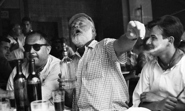 Хемингуэй нэг газраа удаан сууж чаддаггүй хүн байлаа. Тэр дайнд оролцож, Африкт аврага загас, арслан агнан, Германы шумбагч онгоцыг ангуучлан, онгоцоор нисэж, галд шатаж, агаар, ус, газрын бараг бүх осолд орж, бокс тоглон, уулын цанаар гулгаж, нэг үгээр хэлэхэд хүний үхэж болох бараг бүх арга замыг туулан гарсан. Дээр дурдсан бүх зүйлийг туулан явж байхдаа газрын гаваас ч хамаагүй архи олоод уучихдаг шидтэй эр байсан юм. Америкийн “Хуурай хууль”, Дэлхийн дайны фронтын шугам дээр ч тэр архи уудаг байлаа.