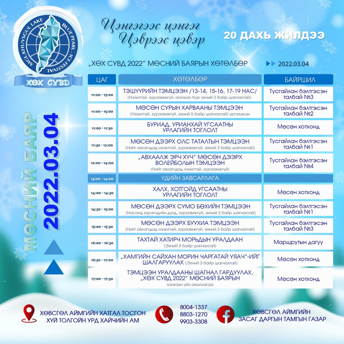 Тэрхүү зөвлөмжид ирэх гуравдугаар сарын 3-5-ны өдрүүдэд зохион байгуулагдах “Хөх сувд” мөсний баярыг байгаль орчинд ээлтэй байдлаар зохион байгуулах талаар тусгасан байна. Энэ талаар БОАЖ-ын сайд Б.Бат-Эрдэнэ “Баярт очсон иргэдийн машин техникийг нуурын мөсөн дээр зогсоохгүй байх, хогийн цэгүүдийг олноор байгуулах, зөвхөн био 00-той аялал жуучлалын газруудыг ажиллуулах зэрэг шаардлагыг тавьж байна. Энэхүү баярыг байгаль эх дэлхийгээ хайрлах, Хөвсгөл нуураа хамгаалах зорилготойг хүн бүхэн мэдэрч тэмдэглэж байхыг бид бүгд зорьж байгаа. Энэ бүх бэлтгэл ажлыг бэлтгэхтэй холбоотойгоор салбарын яамнаас Ажлын баг газар дээр нь очоод ажиллаад ирсэн” гэлээ.