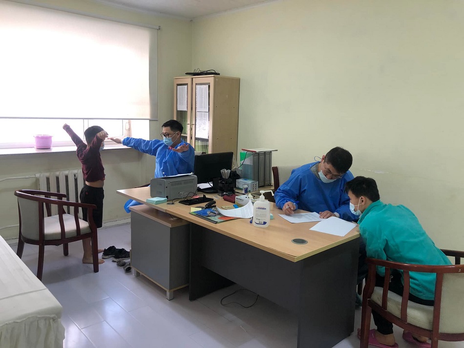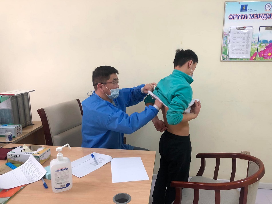 "Гэмтэл согог судлалын үндэсний төв"-ийн эмч нар өнөөдөр /2022.02.26/ Асран хүмүүжүүлэх "Өнөр бүл хүүхдийн төв" дээр ажиллаж, хүүхдүүд болон ажилтан, албан хаагчдад урьдчилан сэргийлэх үзлэг, оношилгоо хийж байна.