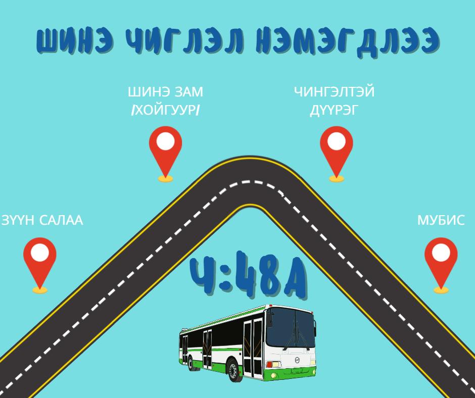 Иргэд, олон нийт гуравдугаар сарын 3-ны өдрөөс буюу маргаашаас эхлэн нийтийн тээврийн Ч:48А чиглэлийн автобусаар үйлчлүүлэх боломжтой.