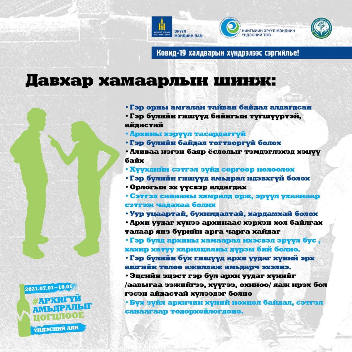 Дундговь аймгийн Засаг даргын Тамгын газраас аймгийн хэмжээнд 2022 оны хоёрдугаар сарын 18-ны өдрөөс хоёр сарын хугацаатай “Архигүй амьдралыг цогцлооё II”аянг эхлүүлээд байна.