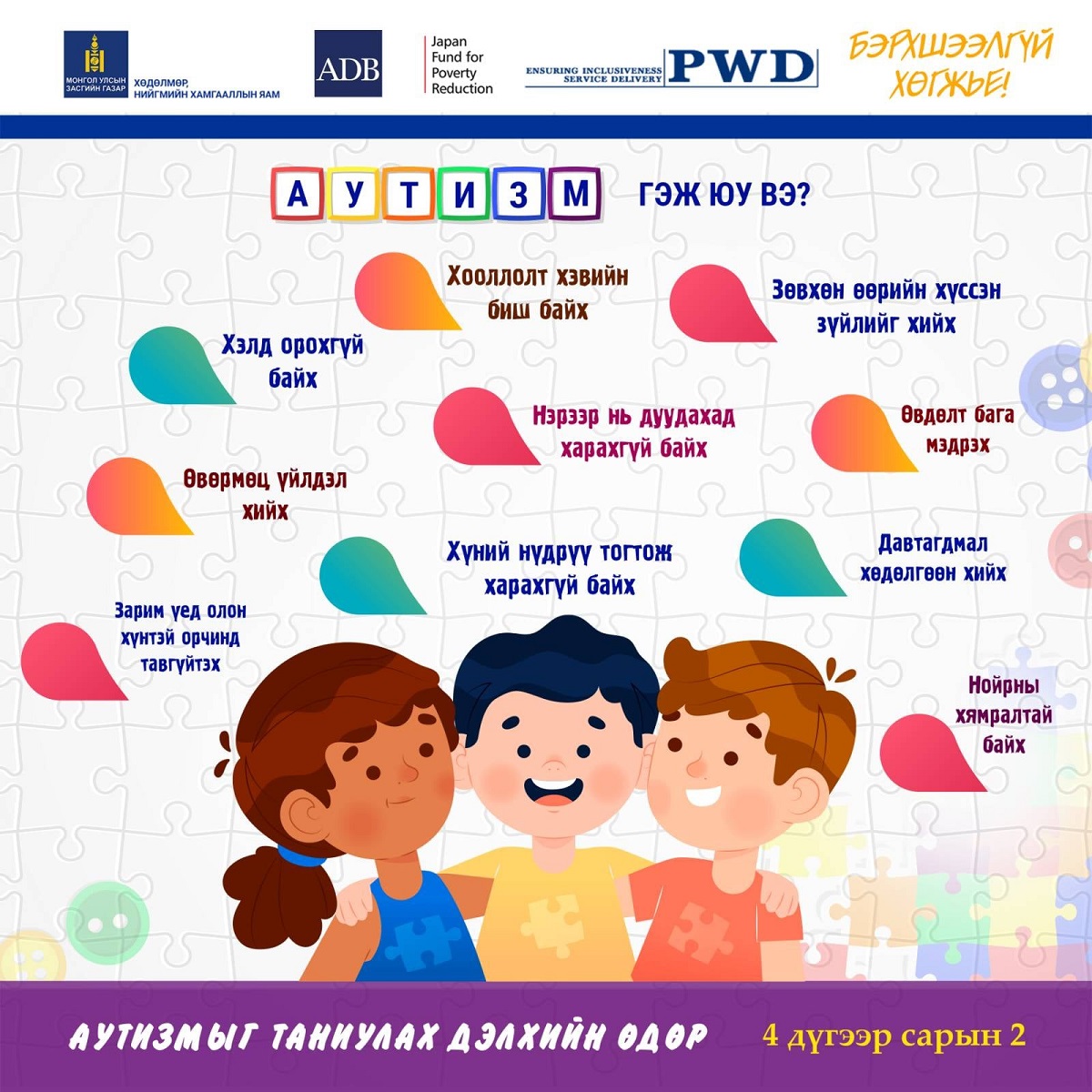ӨНӨӨДӨР АУТИЗМЫГ ТАНИУЛАХ ДЭЛХИЙН ӨДӨР