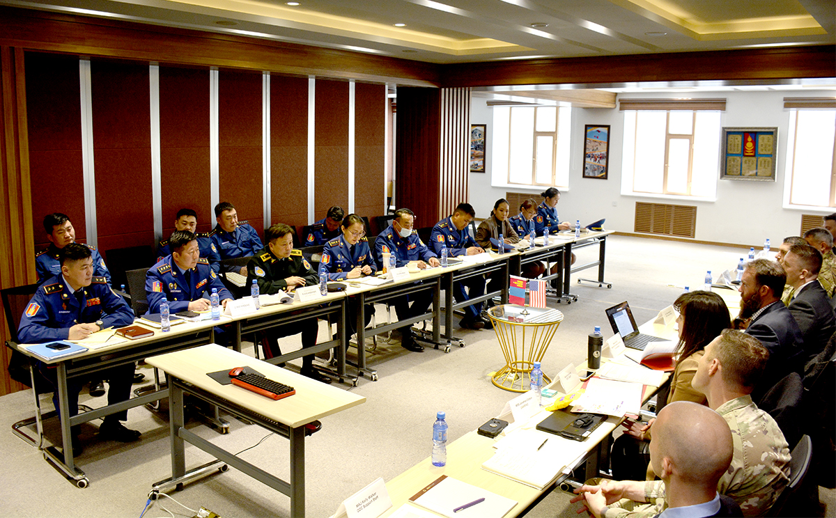 Уулзалтад ОБЕГ-ын дэд дарга, бригадын генерал Б.Ууганбаяр, АНУ-ын Элчин сайдын яамны Батлан хамгаалах хамтын ажиллагааны хэлтсийн дарга, хошууч Эрик Келли нараар ахлуулсан хоёр улсын ажлын хэсгийнхэн оролцож байна.