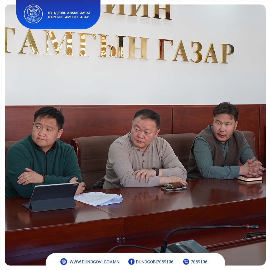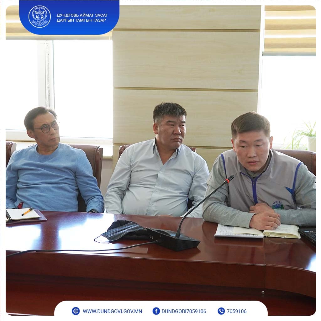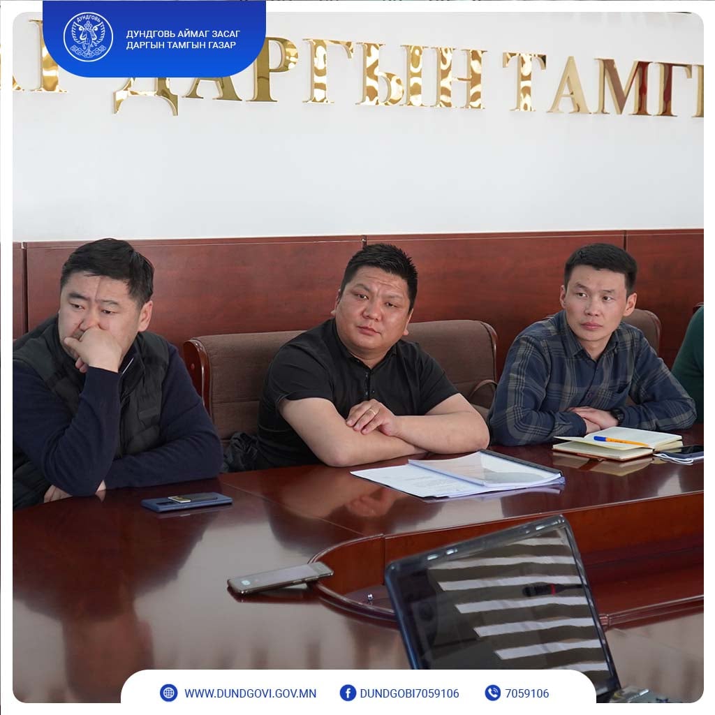 Дундговь аймгийн хэмжээнд удаашралтай байгаа барилга байгууламж болох Сайнцагаан сумын “Ахмадын өргөө”, “Цэнгэлдэх хүрээлэн”, “Нэгдсэн эмнэлэг”, Гурвансайхан сумын “Дотуур байр”, Говь-Угтаал сумын “Спорт зал”, Дэлгэрцогт сумын “Соёлын төв”, Цагаандэлгэр сумын “Соёлын төв”, Эрдэнэдалай сумын “Сумын төвийн 2 км хатуу хучилттай авто зам” ажлуудыг гүйцэтгэж буй “Зуут констракшн” ХХК, “Бум констракшн” ХХК, “Хэрмээдэй” ХХК, “Өлзий хутгийн наран” ХХК, “Тэнгэрийн тэмдэг” ХХК, “Цагаан бургалдай” ХХК, “Одда тайж” ХХК-уудын удирдлага, төлөөллүүдтэй өчигдөр /2022.04.18/ аймгийн Засаг дарга Ц.Мөнхбат, Хөгжлийн бодлого, төлөвлөлт, хөрөнгө оруулалтын хэлтсийн дарга Н.Эрдэнэ-Очир, Газрын харилцаа, барилга, хот байгуулалтын газрын дарга Э.Чагнаадорж нар уулзан, ажлын явцтай танилцаж, ажлыг эрчимжүүлэх чиглэл өглөө.