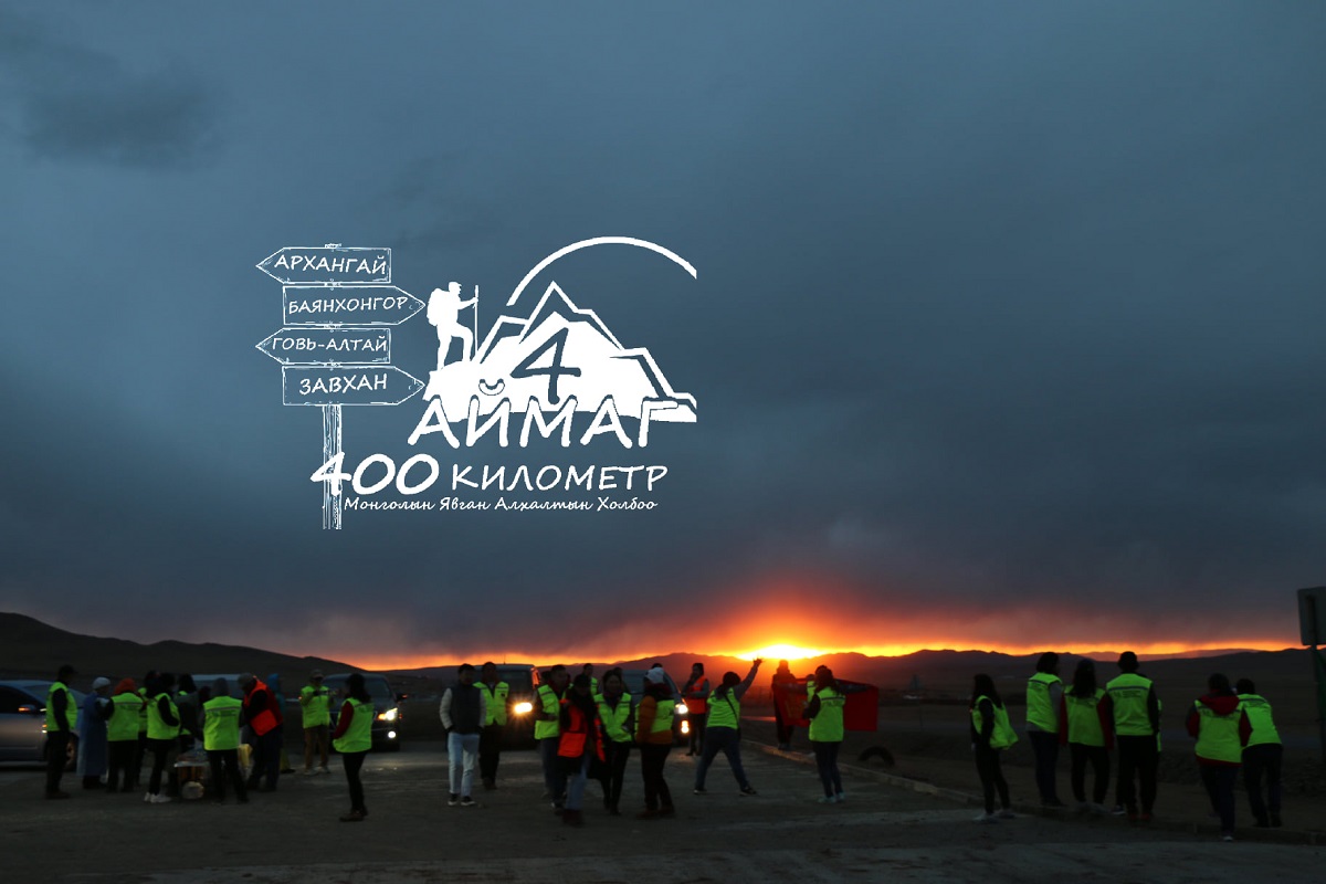“4 аймаг 400 км” явган алхалтын багийнхан дөрөвдүгээр сарын 10-ны өдөр Завхан аймгийн Улиастай хотоос алхалтаа албан ёсоор эхлүүлсэн өдрөөс эхлэн тасралтгүй 10 хоногийн туршид цасан шамарга тавьж, эрчит салхи шуурч, өндөр уулс, хадан хясаа, хөр цас, цөн түрж мөс хайлсан гол мөрөн гээд бишгүй саад бэрхшээл дундуур аялалаа үргэлжлүүлсээр Архангай аймагт хүрэлцэн ирж аялалаа амжилттай өндөрлүүлсэн юм. Багийн гишүүд хэдийгээр байгалийн сорилт, бэрхшээл дундуур алхсан ч явах тусам зориг чангарч, зорилго нь тодорч, замдаа сайн явж ирлээ.
