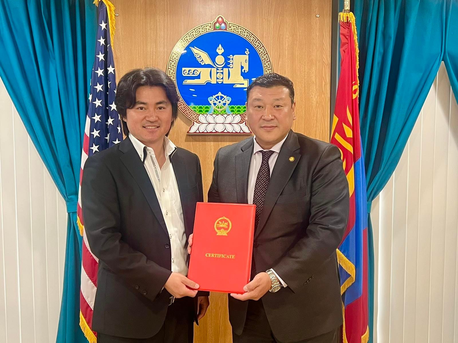 АНУ-д суугаа Монголын Элчин сайд Ө.Батбаяр АНУ дахь Монгол Улсын Соёлын элчээр томилогдсон Шин Кояамада-д Соёлын элчийн гэрчилгээг гардуулж, хамтын ажиллагааны гэрээ байгуулав.