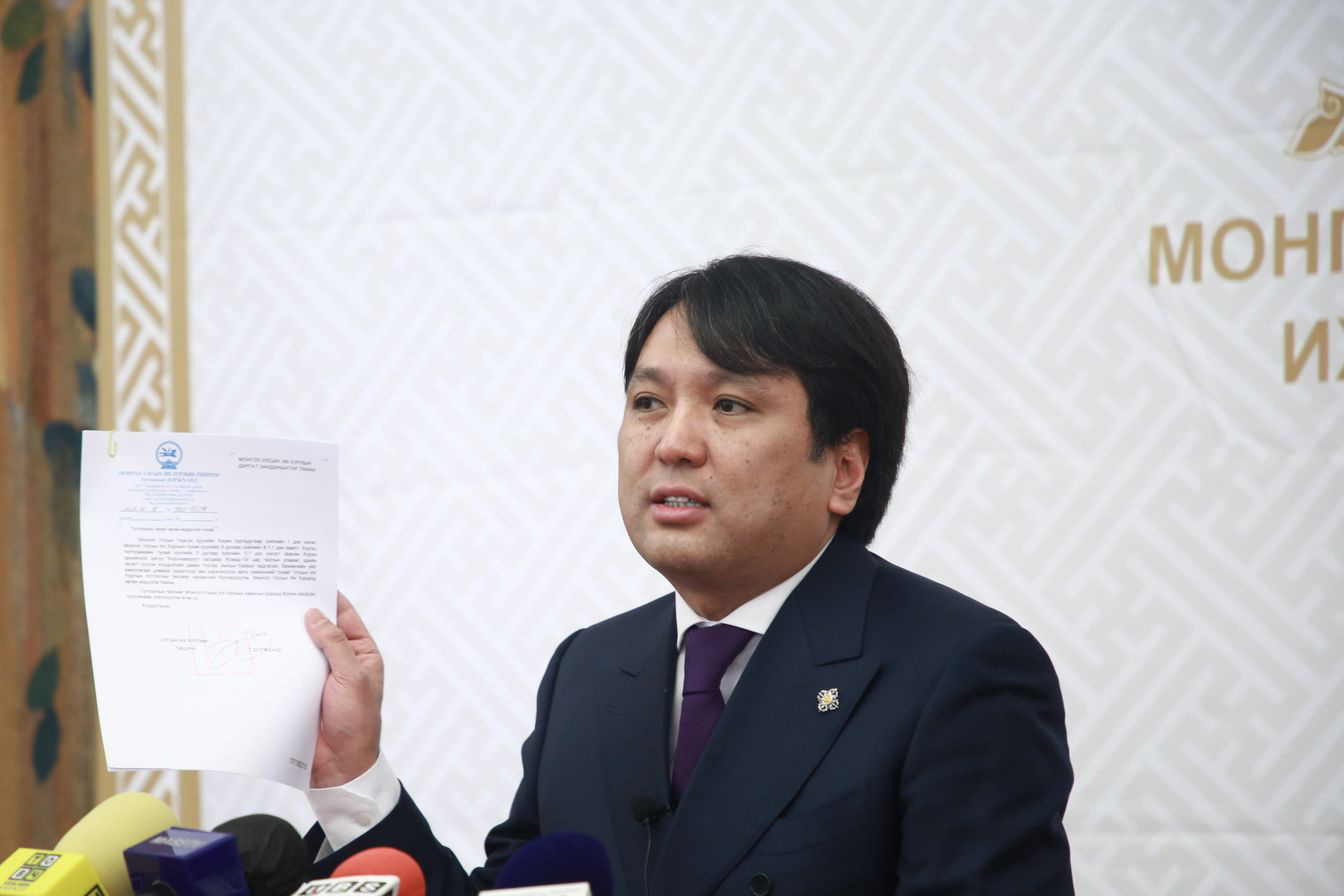 Мөн бид таван хоногийн өмнө УИХ-ын даргад шаардлага хүргүүлсэн. Уг шаардлагын хариуг маргаашийн Төрийн байгуулалтын байнгын хороогоор дамжуулж албан ёсоор өгнө гэсэн" гэв.